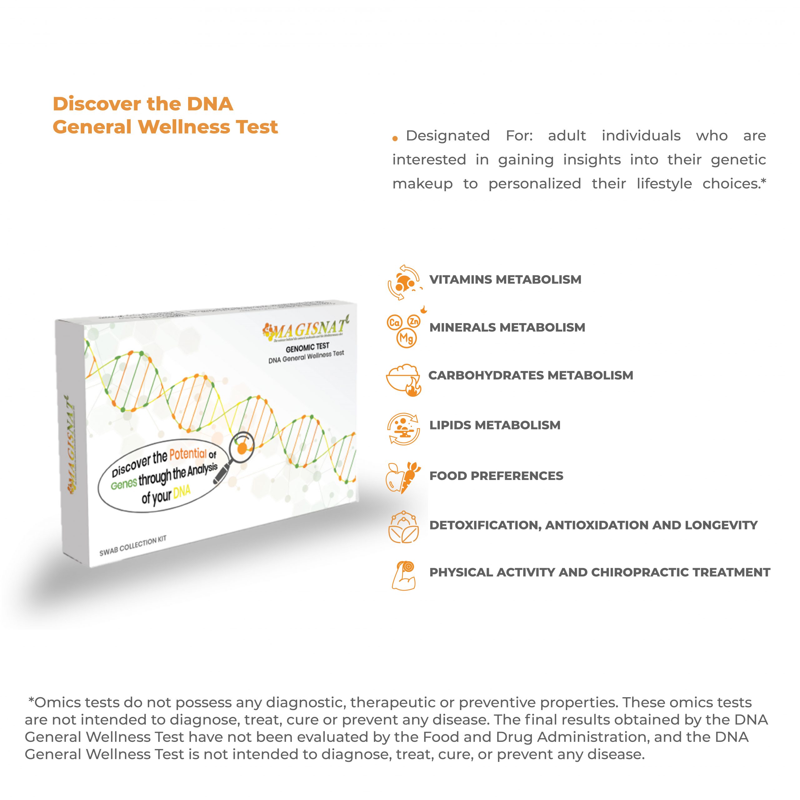 Disclaimer MAGISNAT DNA Wellness Tests are designed for general wellness and informational purposes only. They are not intended to diagnose, treat, cure, or prevent any disease. These tests have not been evaluated by the Food and Drug Administration. Results should be interpreted alongside professional medical advice. Data is processed securely, and samples are destroyed after 180 days. The final results obtained by this Low-Risk General Wellness Test have not been evaluated by the Food and Drug Administration, and they are not intended to diagnose, treat, cure, or prevent any disease.