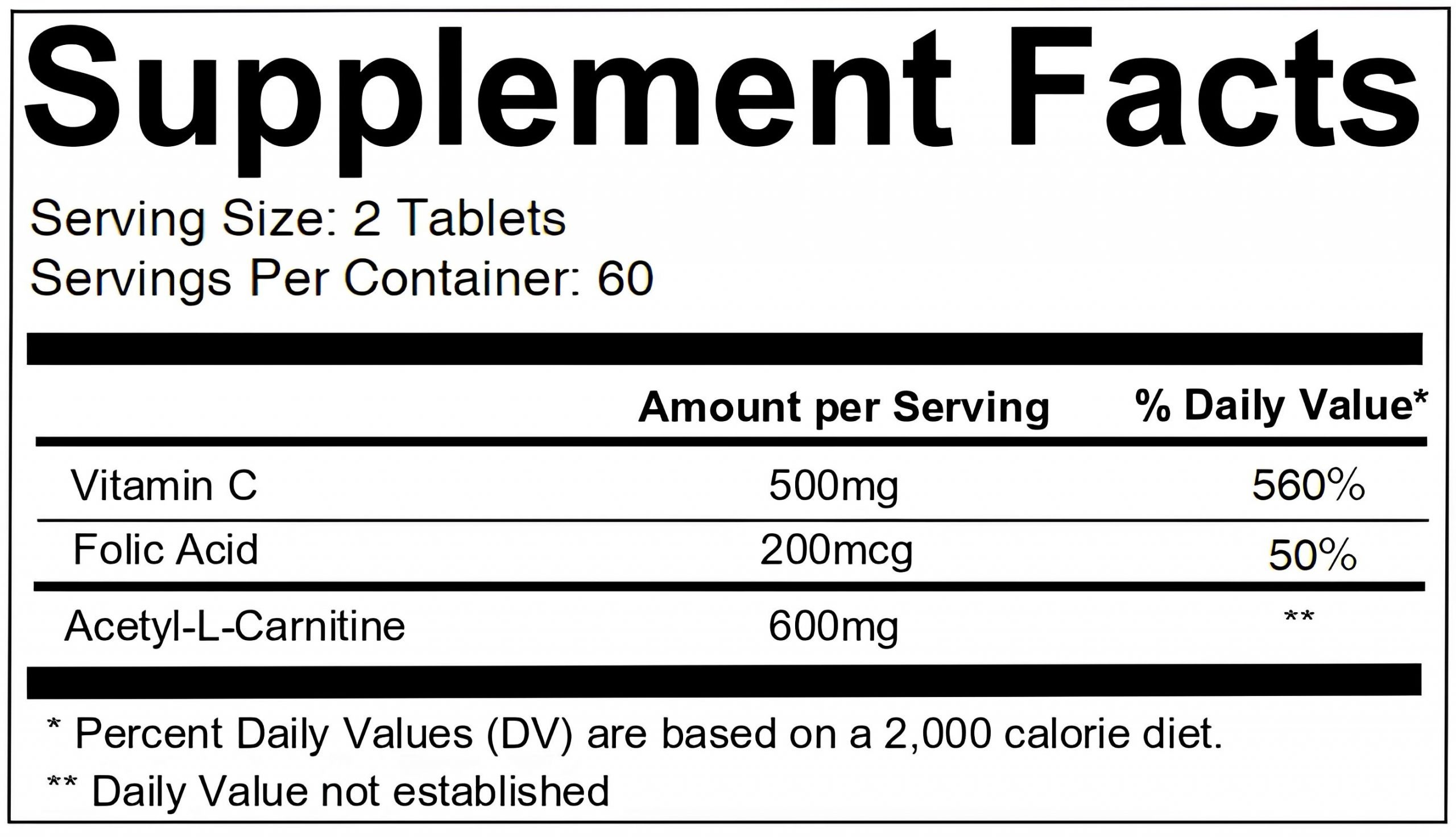 - Premium Quality Ingredients – Boost your strength and energy with our carefully chosen blend of Acetyl-L-Carnitine, Folic Acid, and Vitamin C. Trust in the highest quality ingredients for maximum effectiveness. *